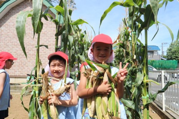 1学期にみんなで種を蒔いて、水をあげたり様子を見に来ていたとうもろこしが立派に育ちました🌽先生から収穫をするお話を聞いて、朝から楽しみにしていた子どもたち😊 畑の前で圭治先生から収穫の仕方を真剣な表情で聞きました。「とう … 続きを読む 年長組~とうもろこしの収穫🌽~